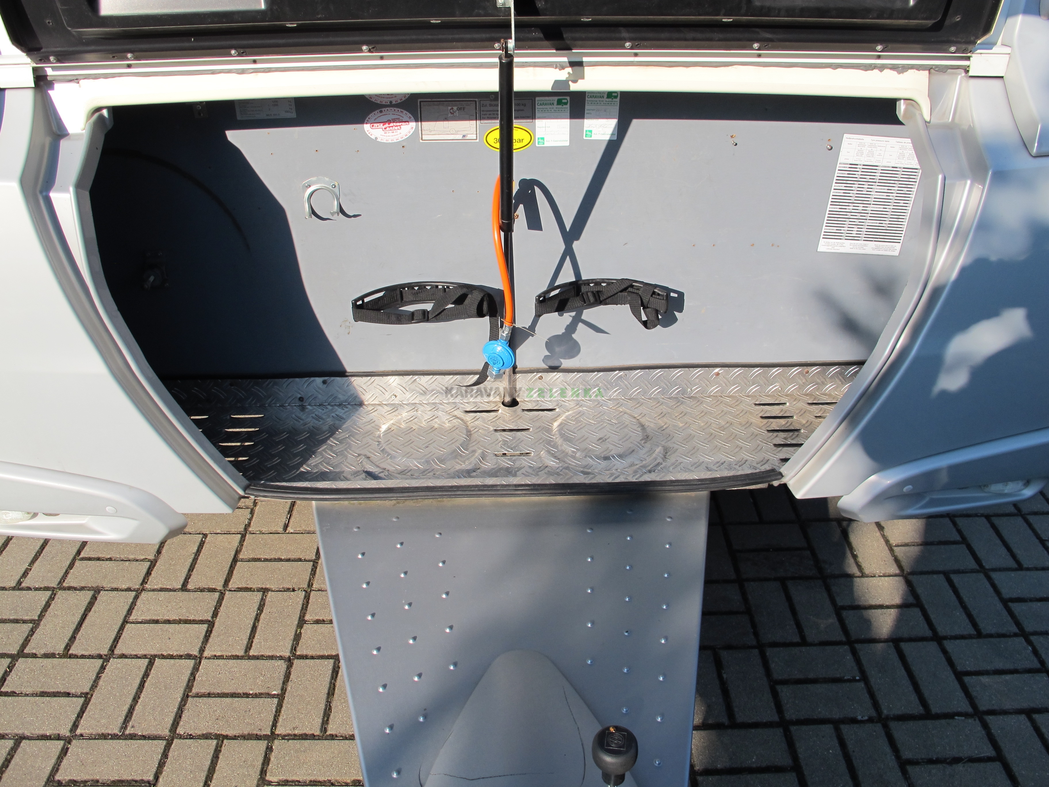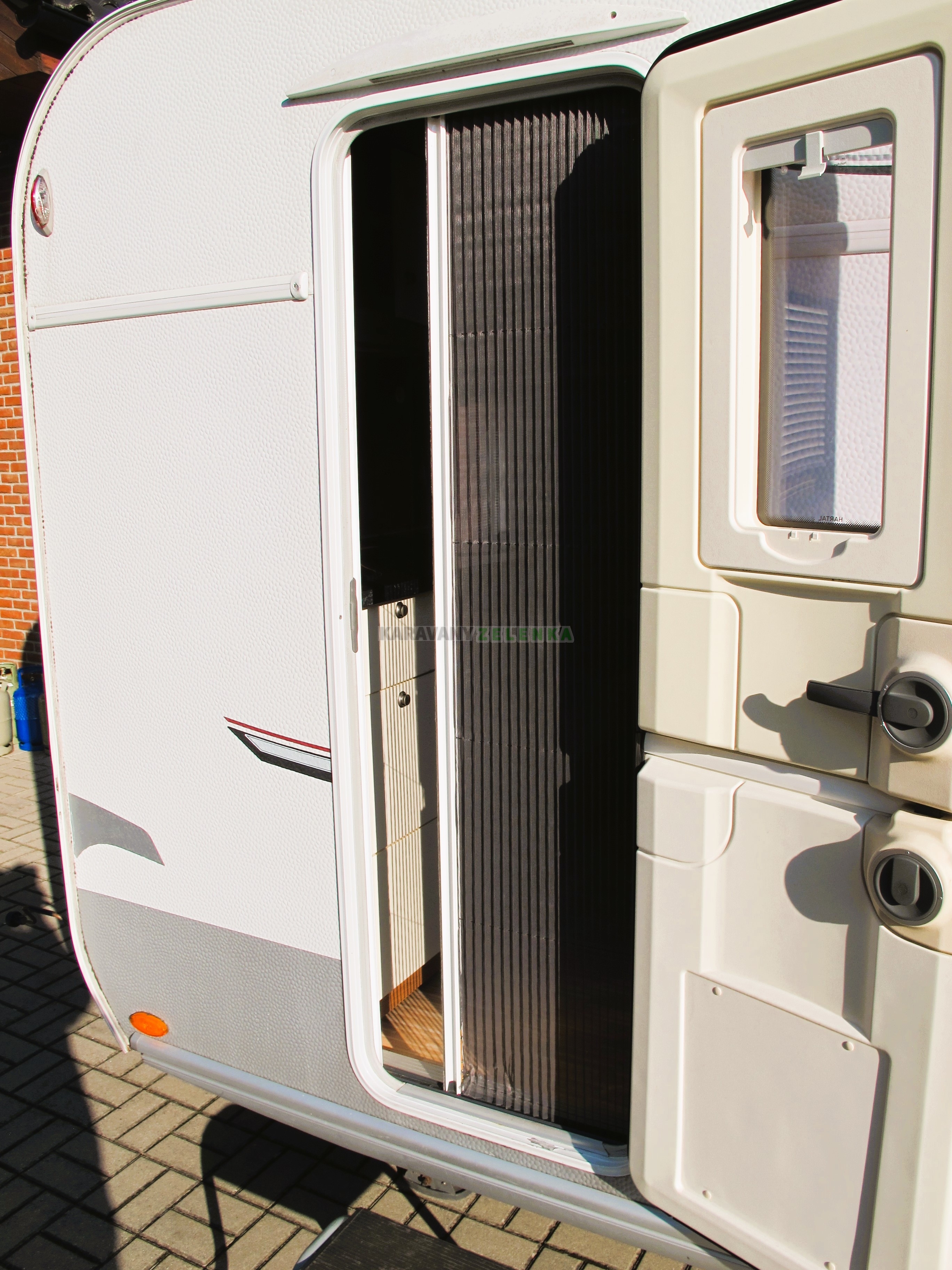 | Vybavení: | Topení plynové, lednice, vařič, kazetové WC, bojler, anténa TV, automatický MOVER + AKU + nabíječka, nafukovací předstan, stabilizátor. |