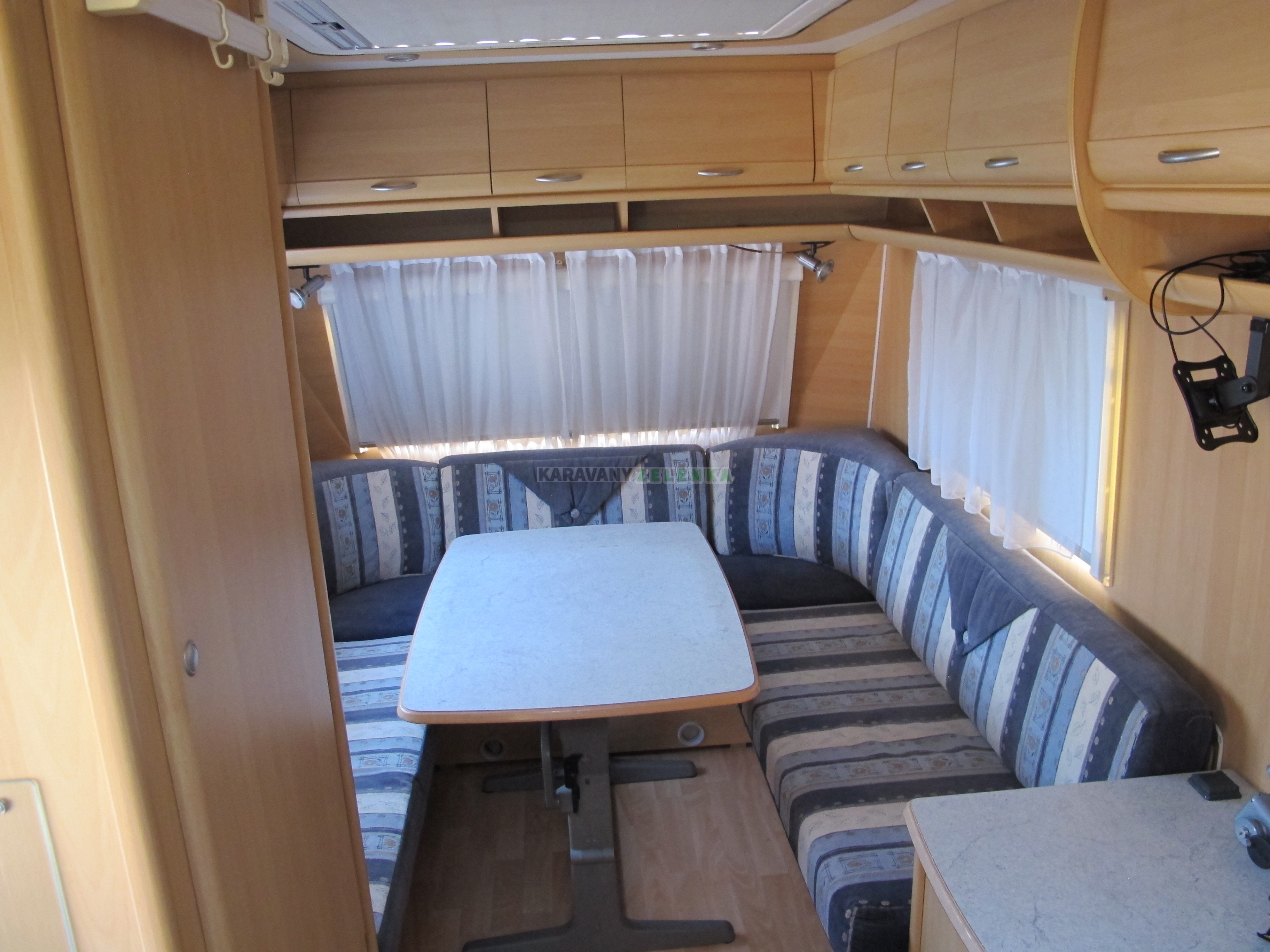 | Vybavení: | Topení plynové TRUMATIC s ruzfukem, lednice s mrazákem 12 / 220 V a Pb, velká kuchyň, plynový sporák, dřez, kopelna s otočným kazetovým WC s el. splachováním, umyvadlo se sprchovou baterií, plastová vanička s odtokem, bojler 5L na 230V, velké střešní okno HEKI, 1x malé střešní okno v kuchyni, 1x malé střešní okno v koupelně, v oknech termožaluzie a sítě proti hmyzu, dělené dveře se sítí, stabilizátor, servisní dvířka, vnitřní nádrž na vodu 50L s čerpadlem 12V, mobilní nádrž na šedou vodu, MOVER- POWETOUCH, detektor plynu, solární panel 175 Wp, baterie AGM 100 Ah, velký předstan se záclonkami, 1x sluneční plachta, nové pneu, držák na 2 kola na oji. Do karavanu nezatéká. STK do 4/2027 80 Km/h |