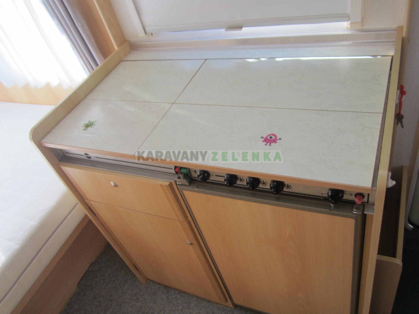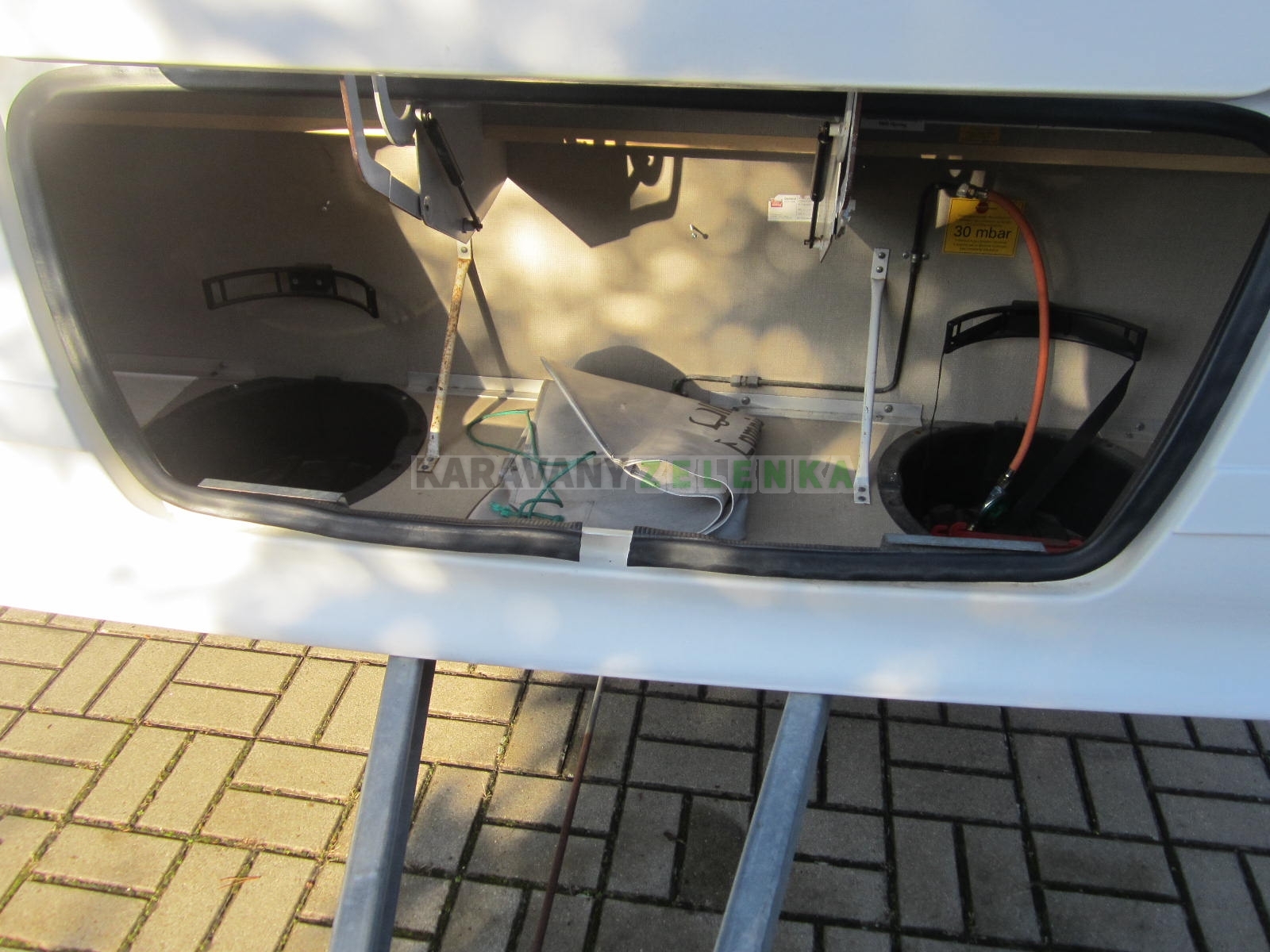 Topení plynové, lednice, vařič, kazetové WC, bojler, anténa TV, předstan ISABELLA, rezerva.