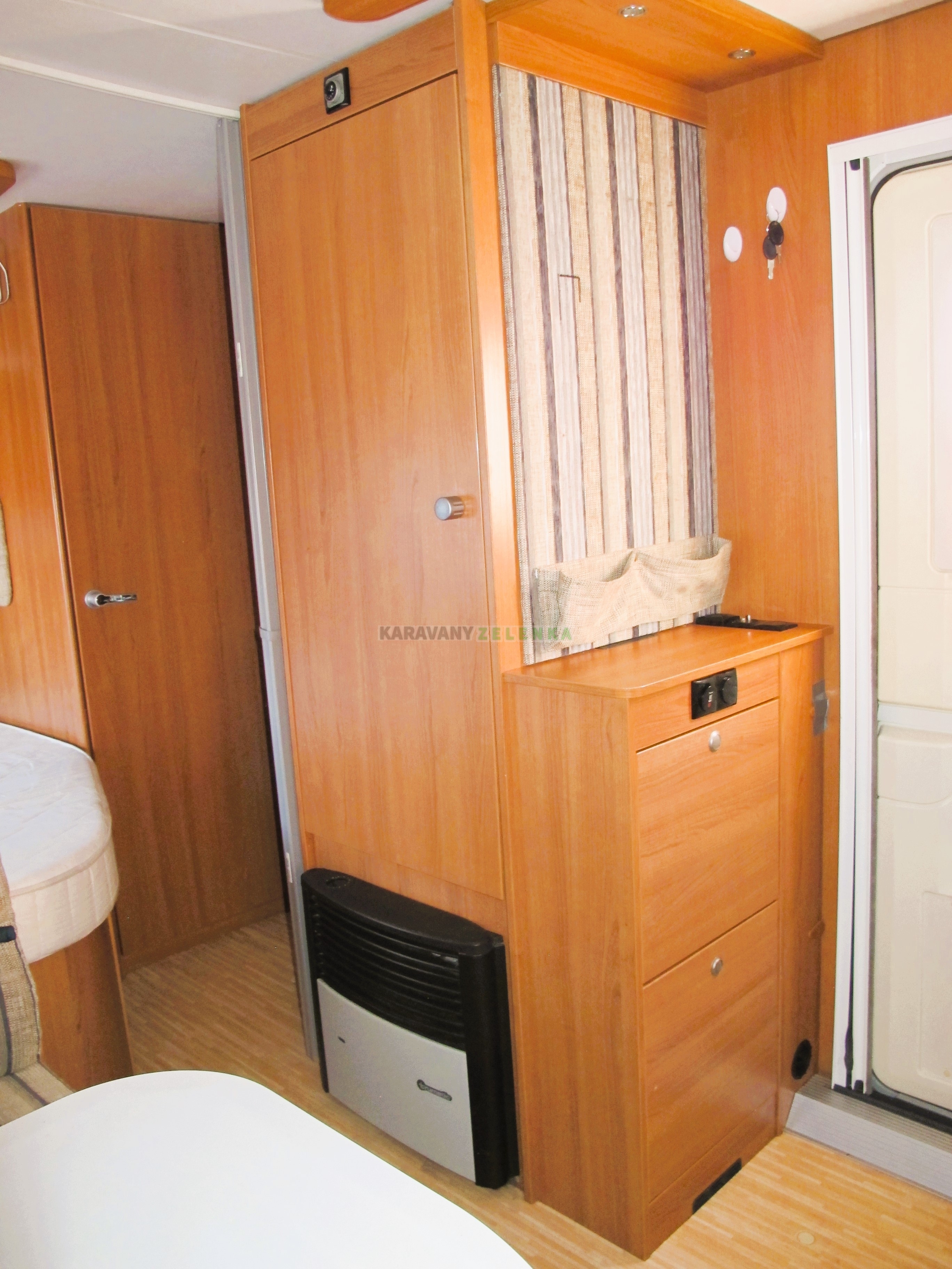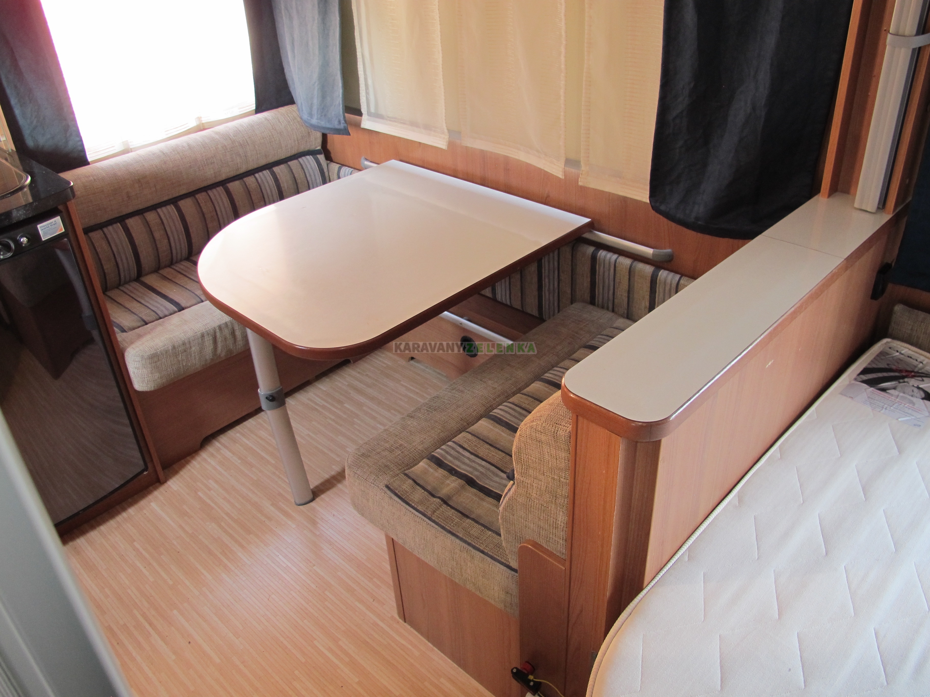 | Vybavení: | Topení plynové, lednice, vařič, kazetové WC, bojler, anténa TV, automatický MOVER + AKU + nabíječka, nafukovací předstan, stabilizátor. |