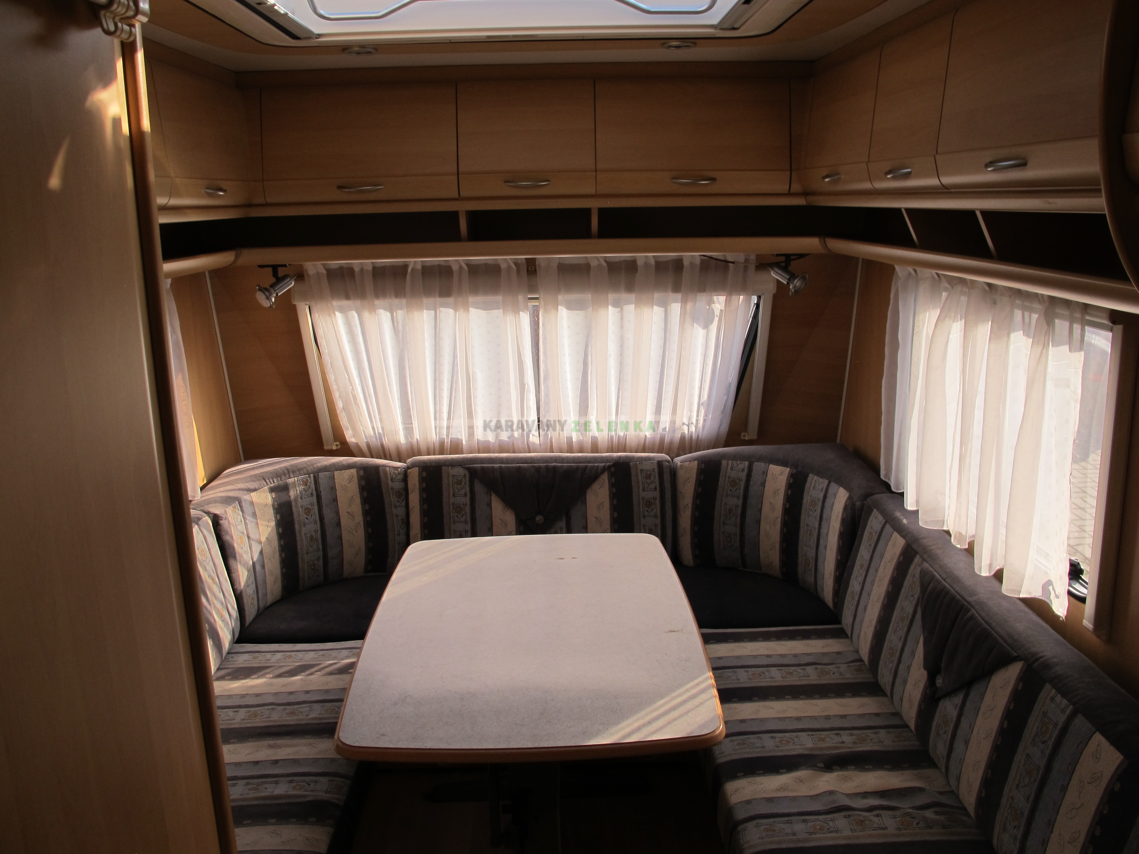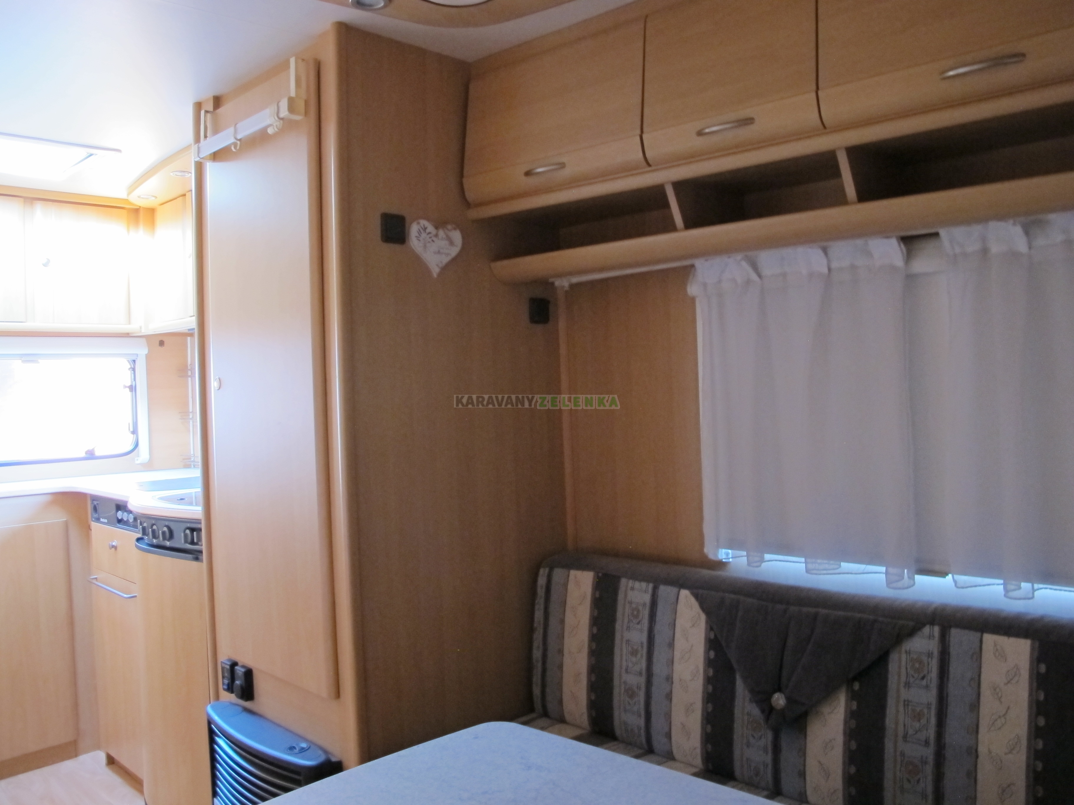 Topení plynové TRUMATIC s ruzfukem, lednice s mrazákem 12 / 220 V a Pb, velká kuchyň, plynový sporák, dřez, kopelna s otočným kazetovým WC s el. splachováním, umyvadlo se sprchovou baterií, plastová vanička s odtokem, bojler 5L na 230V, velké střešní okno HEKI, 1x malé střešní okno v kuchyni, 1x malé střešní okno v koupelně, v oknech termožaluzie a sítě proti hmyzu, dělené dveře se sítí, stabilizátor, servisní dvířka, vnitřní nádrž na vodu 50L s čerpadlem 12V, mobilní nádrž na šedou vodu, MOVER- POWETOUCH, detektor plynu, solární panel 175 Wp, baterie AGM 100 Ah, velký předstan se záclonkami, 1x sluneční plachta, nové pneu, držák na 2 kola na oji. Do karavanu nezatéká.