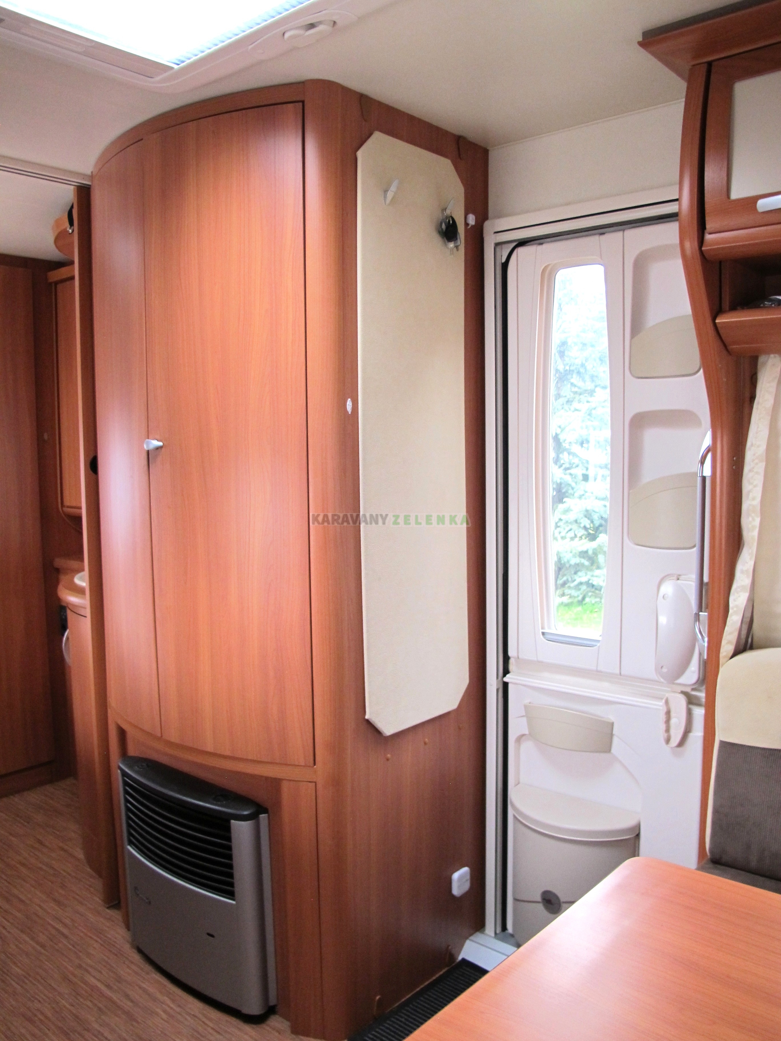 | Vybavení: | Topení plynové + el. podlahové, lednice, vařič, kazetové WC, bojler + sprcha, ALU - kola, anténa TV, zánovní předstan ISABELLA 300, automatický MOVER + AKU + nabíječka, stabilizátor. Naprasklé zadní okno. |